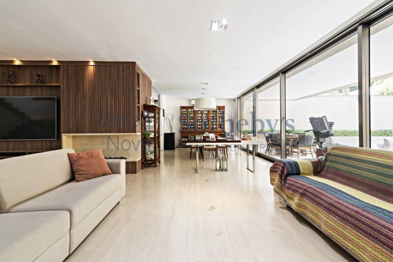 Sophisticated house on a tree-lined street 500 meters from Ibirapuera Park. Completely renovated, it has an intimate room and four suites in the intimate area, one master with double bathroom and sauna. There is ample living for three environments, fireplace, terrace, integrated kitchen, pantry and service area. All rooms have air conditioning, automated blinds and a security system. It has an office with independent entrance to the house and four parking spaces, which can be expanded to five. The leisure area offers a large garden with swimming pool and playground.