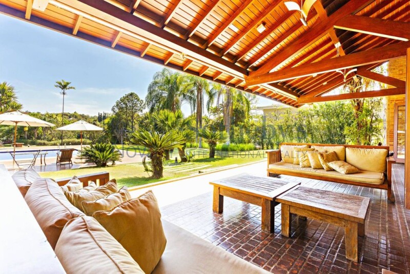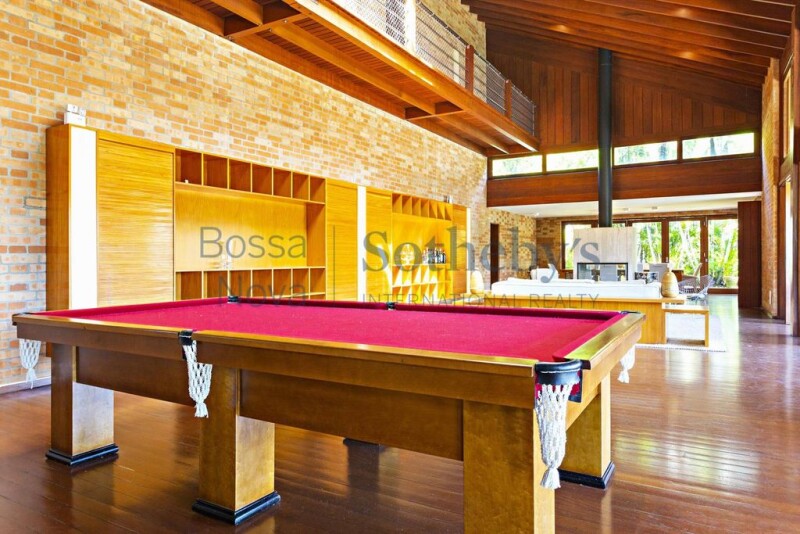 Country house in front of the lake. It has very spacious environments, with natural lighting and abundant presence of wood, which gives it a very welcoming atmosphere. It has a swimming pool, barbecue, dining room, TV room, fireplace room and home theater. Balcony facing the pool deck and framed by the garden. Accommodates 18 people and has a six-car garage. In the intimate area, it has five bedrooms, one master suite and four American suites with double height and mezzanine.