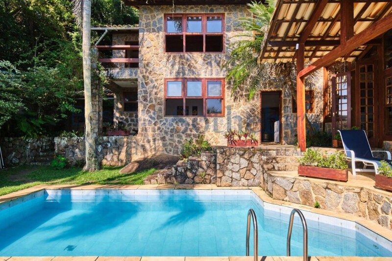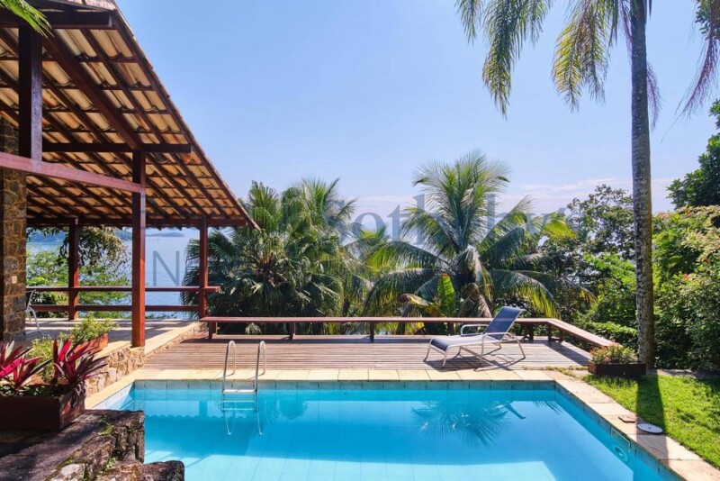 House overlooking the sea in Paraty. All of its rooms have views of the sea. The house consists of two suites, one of which is a master, spacious living room, kitchen, lavatory, mezzanine and a large balcony. Outdoor area with gourmet space with barbecue, fireplace, garden and swimming pool also overlooking the sea. The property also has a house for staff with bedroom, bathroom, living room, kitchen and balcony overlooking the sea. It has a pier, a solar energy system that serves the entire house, as well as a power generator.