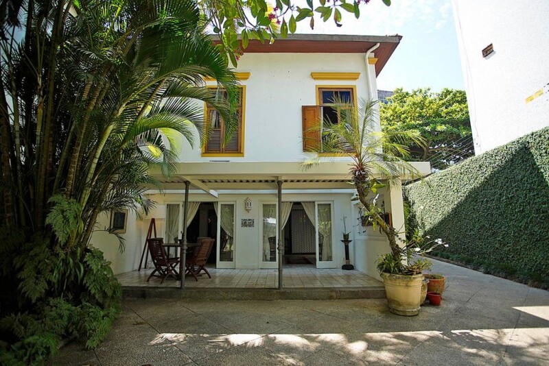 Beautiful house in Gávea, near the Teresiano school, built in 1898 and renovated by architect Jorge Hue. Completely facing the forest, with a patio surrounded by trees and plants and a small pond. On the second floor there are two very spacious rooms with an excellent covered veranda, facing the patio. Spacious kitchen and pantry, a wine cellar and a guest toilet, two dependencies for the maid with a bathroom. Another laundry room and a kennel. On the second floor there is a living room and a home theater, 4 bedrooms, two of them with private bathrooms, one with closet, an office and a mezzanine, plus a delightful veranda with a view to the woods and a guest bathroom. There is also an attached house with a bedroom with private bathroom, 2 parking spaces, and it is possible to put more cars on the patio.
