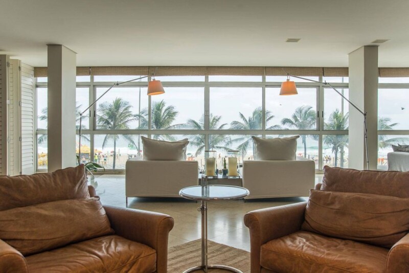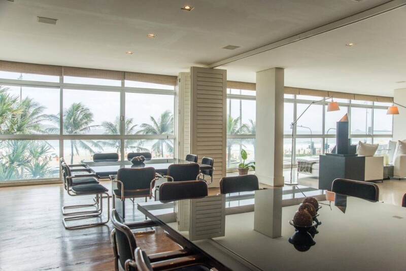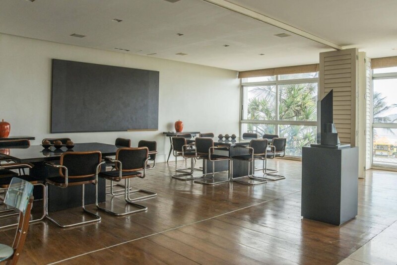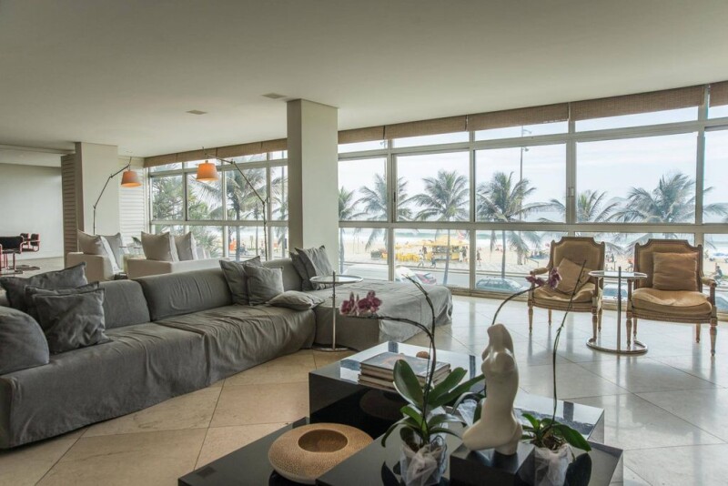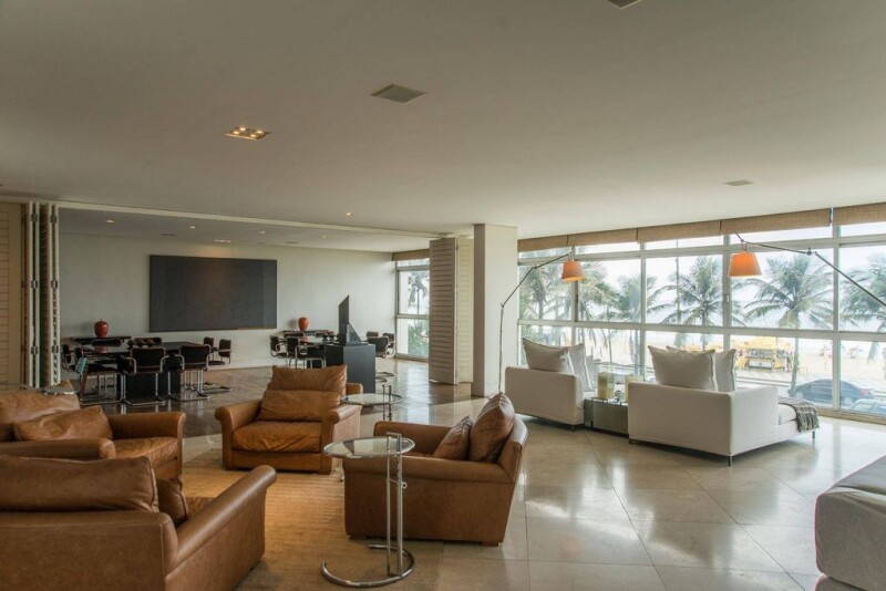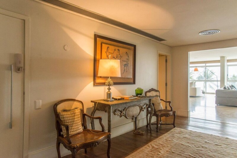 This spacious apartment has a contemporary style and project by the Brazilian architect David Basto, with a large use of marble and demolition wood. The ambiances are lofty, there is central air-conditioning and four suites.
