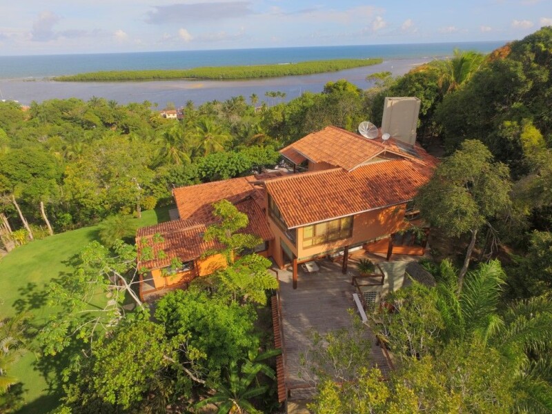 The property, situated in a gated condominio, was purchased by the current owner in 1993, but completely reformed and restructured between 2002 – 2004, culminating in the beautiful and luxurious villa that you can witness today. The total constructed area is a spacious 550 sqm, with 150 sqm external area (deck) – on a breathtaking 6000 sqm lot. On the lot there is furthermore a 80 sqm house for the employee (casa de caseiro). The distance to the nearby beach is about 200 m. The house is very close to the headquarters of the German World Cup team (800 m). The distance to the next airport is about 30 km. Details and Principal Aspects: hillside location, detached, sea location (approx. 180 m as the crow flies to the sea). Views of the islands and the sea in front and beach jungle in the back, on the hill two neighbors (German and German-Brazilian), house distance about 50 or 150 m. panoramic view of the sea, two islands, bay with rock barrier layout of the house: 2 kitchens, service areaand pantry, living room, dining room, four bedrooms (2x suite), 4 bathrooms, large studio / library, three garages, storage room, three outdoor decks electricity 220 volt, hot water solar system, own new deep well with complex filter system, satellite television sky, internet, telephone / fax caretaker house (“casa de caseiro”) with 80 sqm new on the property, own paved drive, automatic gate large, well-kept tropical garden large well-built dog kennels for 2-4 dogs The property has recently been surrounded with a 50 cm high wall with 150 cm fence, the view is unobstructed, The house was built at ground level in 1989, and in 2004 completely rebuilt and reformed by a well-known architect from Sao Paulo. High-quality materials, also imported, complete the equipment. Large, ca. 90 sqm living room with terrace, light height just under 6 m, high quality kitchen with balcony to the living room, adjoining dining room for ten people. On the ground floor there is a second kitchen, in between the service room and storage room. Three large and high bedrooms (1 suite), another bathroom and guest toilet on the ground floor, stairs to the storeroom and garage, or to the upper floor. Upper level: large studio / library (70m2) with floor-length windows, all-round view, access to the dressing room, large bedroom (suite) with terrace, large bathroom with toilet, two sinks, a staircase to the whirlpool and shower. The maste suite has air conditioning, all other bedrooms have a fan. Further Considerations Documentation can be sent on request. We accompany clients during the whole sales process and provide encompassing consulting services. The sales price represents a negotiation basis. The property is being sold “porteira fechada”, that means with everything, including furniture and two cars (Landrover Defender 110 and BMW X5). For google coordinates, please see annexed kmz-file. Address: CEP 45803-000 Santa Cruz cabralia Bairro St Andre Vila bela vista s/n About the Location: Santo Andre is a former fishing village with about 1000 inhabitants. The village can be reached by a ferry (7 minutes) from Santa Cruz de Cabrália, the first city in Brazil. Santa Cruz de Cabrália has 40,000 inhabitants and a complete infrastructure. The distance to Porto Seguro is about 28 km, with an international airport with daily connections to Sao Paulo, Salvador and Belo Horizonte, bus station with connections to all major cities. Santo Andre now has two large hotels, many smaller pousadas, restaurants and a small supermarket. In general, the area is valorizing significantly, due to its increasing attractiveness as residential and touristic investment.