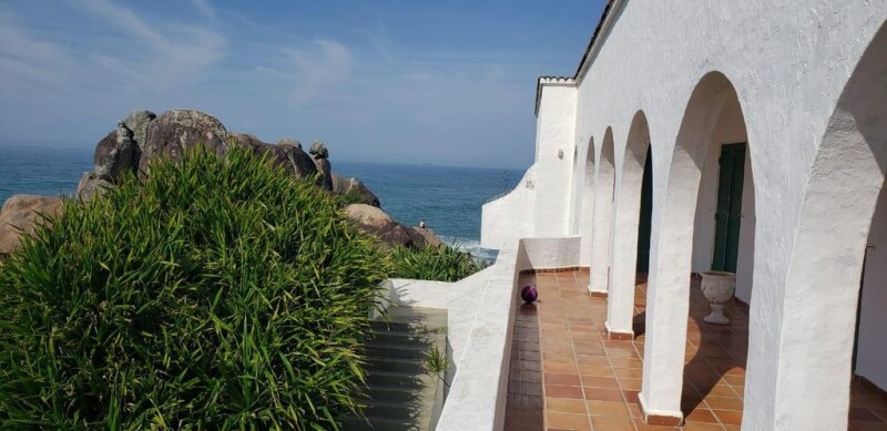 This beautiful mansion in mediterranean style is located at Avenida Brasília 875, Praia Grande (part of the district Enseada) and the municipality of São Francisco do Sul. It consists of 7 contiguous areas: Totaling 14,200 m2, seafront Costão da Praia Grande, next to Sambaqui (Historical Heritage) and Praia da Saudade (Prainha). On the landplot there are 2 Houses respectively: 1,000 m2 (a Greek style villa) and a 200 m² caretaker´s house. The main house has a total of 5 bedrooms, 2 suites, 3 bathrooms, 1 toilet on the upper floor as well as 1 bedroom suite on the lower floor for services and one further guest bathroom. There is also a Covered garage for more than 10 cars that can be transformed into a home area too. Additionally, there is a kitchen and a service area. Regarding the caretaker´s home: It has a total of 3 bedrooms, a living room and kitchen on the upper floor as well as a garage and storage on the lower floor. In addition to the existing buildings, it is allowed to increase the constructed area by 3,125m², totaling 5,000 m² of built area. Zoning: TI / ZR-2 and Feasibility of Residential, Commercial and Tourist use. About the region and Surroundings: Praia Grande is characterised by the exuberant and almost untouched nature. The 26 kilometers of extension guarantee a lot of tranquility to those who visit. The clear, soft sand and the rough sea ensure the presence of surfers, naturists and fishermen. Praia Grande promotes constant interaction with nature. In high season, the traditional throwing fishing championship takes place, attracting practitioners of this sport and visitors/spectators in general.