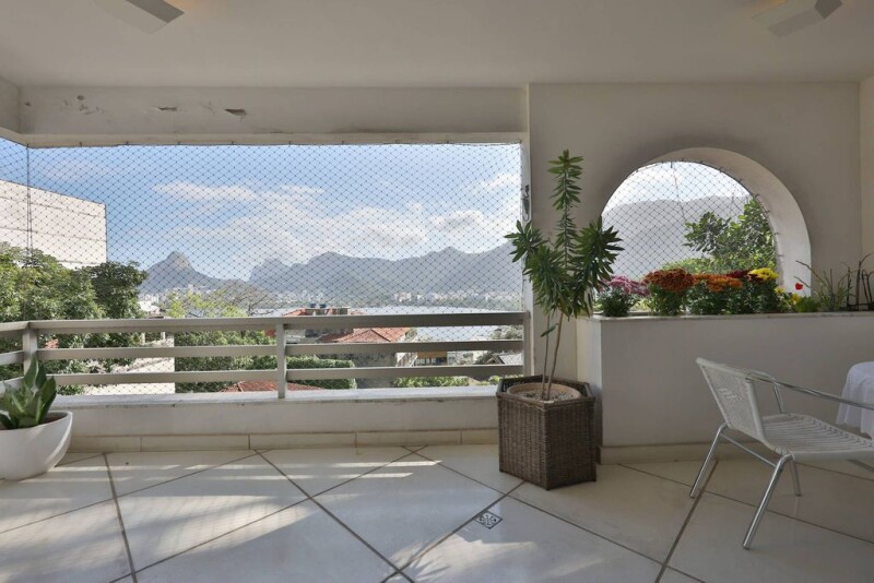 This apartment offers a stunning view of the Lagoa, surrounded by nature. The spacious living room is divided into three well-defined sections, with an integrated balcony and unobstructed views. There are three bedrooms, two of which are suites, with the third bedroom served by a bathroom. There is also a powder room at the entrance. The kitchen is large and bright, with a breakfast area and a separate service area. The apartment includes full staff quarters. A private hall with a keyed elevator, along with a separate service entrance, ensures privacy. The building is equipped with two elevators, one for social use and one for service. The property includes two deeded parking spaces, both marked and independent. The building offers amenities such as a play area, gym, and party room. Concierge service is available during business hours, from 7 AM to 9 PM on weekdays and from 7 AM to 8 PM on weekends. The building is monitored by an internal surveillance system, and the street has a gate with security.