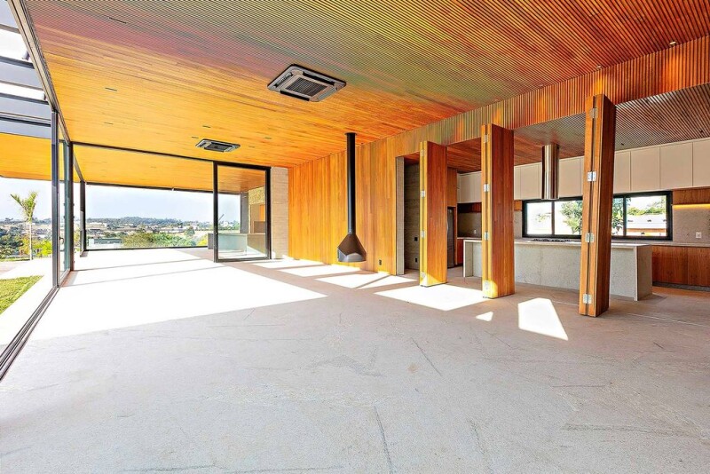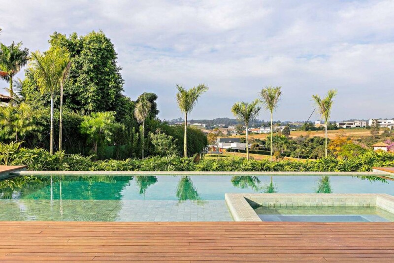 This house for sale in the Terras de São José Condominium in Itu offers 32,292 sq. ft. of total area and 10,764 sq. ft. of built area. With a contemporary style, the home delivers both sophistication and functionality through its well-designed spaces. The property features five en-suite bedrooms, all with hot tubs, an office, spacious and integrated living areas, a kitchen with custom cabinetry, a fireplace, staff quarters, air conditioning, and a security alarm system. Additionally, the property includes a gourmet space with a barbecue, a swimming pool, and a large grassy backyard.