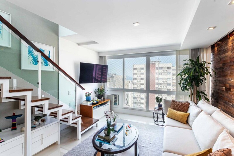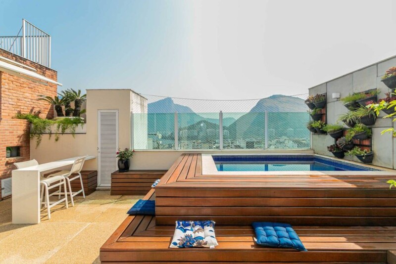 This exceptional duplex penthouse, located in Ipanema's golden quadrilateral, spans 2,400 square feet and features a project designed by an architect. The penthouse offers stunning views of Ipanema Beach and Lagoa Rodrigo de Freitas. On the first floor, there are three comfortable en-suite bedrooms with panoramic views, a living room integrated with the dining room, a powder room, a pantry kitchen, a service area, and a full maid's quarters. The second floor boasts a spacious and cozy terrace with a pool and barbecue, as well as a living room with a bar and TV. The property features high-quality finishes and tasteful design. The building is fully monitored and offers 24-hour concierge service. It includes two deeded parking spaces.