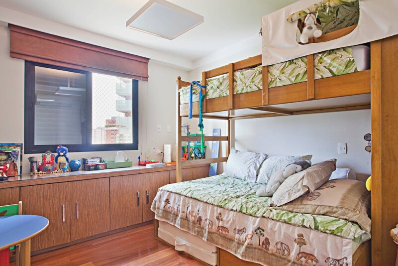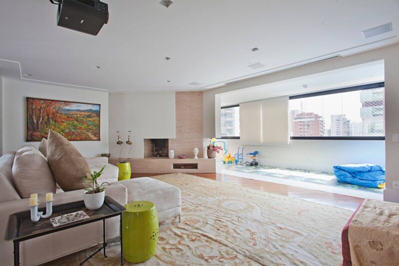 This apartment has great natural light incidence and is surrounded by balconies, integrated to the ambiances. The living area is extremely spacious and the property holds an office, a lunch room, a fireplace and lots of cabinets. There is only one apartment per floor and the condominium offers a pool, a gym, a sports court and a playground.