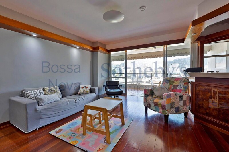 Well-lit and ventilated apartment with an unobstructed view in Laranjeiras. The living area has a wide balcony and two living rooms, as well as a dining room and a half bath. In the sleeping area, there are two bedrooms with closed balconies and one bedroom with en-suite bathroom. The service area comprises a kitchen with a breakfast nook and sleeping quarters for two employees. There are two parking spaces available in the garage, and the apartment building offers eight parking spaces for visitors and leisure facilities, including both adult and kids swimming pools, saunas, a sports court, a tennis court, a barbecue grill, an assembly room and a playroom.