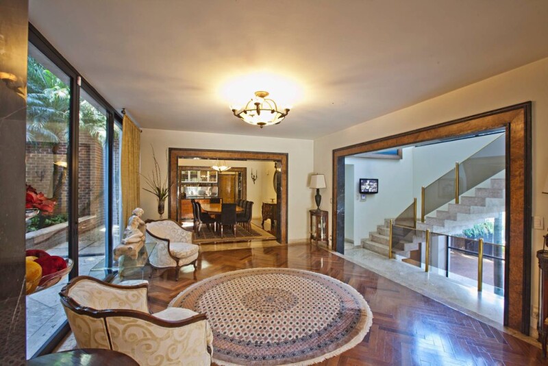 House designed by Marcos Tomanik located on a quiet street, in the upper part of Cidade Jardim, less than five minutes from the Cidade Jardim Bridge. The property features a large outdoor area with lots of greenery, swimming pool, Jacuzzi tub and gourmet space. Inside, there is a living area with multiple environments, a spacious balcony, dining room, bar, breakfast room, two office spaces and a home theater room, in addition to a charming wine room and a terrace. There are three spacious and very sunny bedrooms, two of them with balconies; the main bedroom has separate his and hers closets. In addition, the house has a kitchen, pantry, laundry area, storage room and two employee bedrooms. The street has an armored guardhouse, monitoring and security system throughout the whole property.