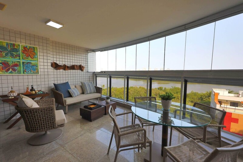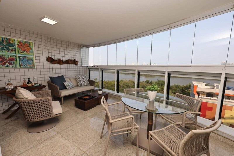 Apartment for sale with 1,948 sq ft, located in Aquarela Península Condominium, Barra da Tijuca. The property features four bedrooms, including two suites, a powder room, glass-enclosed balcony, kitchen with custom cabinetry, and full maid's quarters. The condominium offers complete infrastructure, 24-hour security, and is conveniently located near shopping centers, schools, and markets.