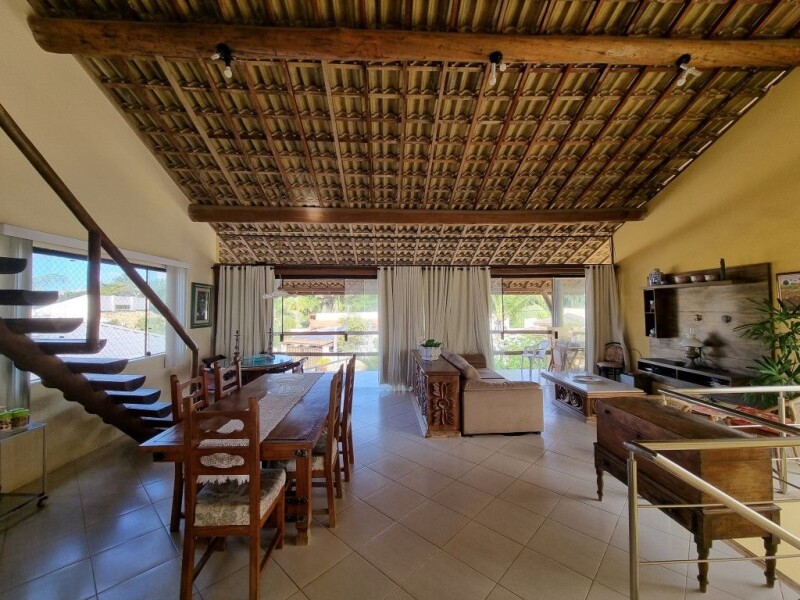 Approximate Land Size: 388.34 m² Total built area of the house: 290.45 m² Ground floor floor area: 128.32 m² Built area of the first floor: 146.86 m² Mezzanine floor area: 13.13 m² Price: € 1,471,000 Detailed Description: The property is located in a high-end gated community, with concierge and 24-hour security, located in a privileged area in Lauro de Freitas, Bahia. The condominium has a club, with a ballroom, children’s area, games room and gym. Outside the condominium, the neighborhood is very quiet and has other residential condominiums nearby. In a 10-minute walk or 2-minute drive, you will find a gym, markets, shops and ATMs. Access to the best beaches in the region is just 7 minutes by car or 30-40 minutes walking. About the “two houses”: This property has 2 completely independent spaces, they are literally two houses within one. On the ground floor there are the two main entrances to the homes by two separate private doors. The ceiling height of the external entrance hall is 3 meters high. Still on the ground floor, on the right side, there is a beautiful garden full of tropical plants, including a beautiful orange tree. This green area extends around the entire house, all the way to the back. On the ground floor, on the left side of the house, there is a corridor that gives access to the service area, being the only shared space between both houses. A door gives direct access to the house from the ground floor. And a ladder gives access to the house above. The service area also has a smaller bedroom that is also a suite, with a bathroom and shower. Ground floor house: The door on the right is the main entrance to the ground floor house. There are 2 suites and a bathroom in the living room. The kitchen is in the same room as the living room and has an “island” countertop measuring 2.74 m x 0.85 m with a beautiful modern finish, granite stone and retro-style decorative light fixtures. The ceiling height of the living room and bedrooms is approximately 2.40 m. The room with approximately 24 m², has access to two suite bedrooms, of approximately 12 m² each. The living room of the house is composed of large windows with a beautiful view of the house’s garden. It provides excellent ventilation in a pleasant environment. The top house: On the ground floor, the door on the left takes you to the first floor, up the stairs. Where you can find a home of ample and welcoming space. The ceiling, at the highest part, measuring approximately 10 meters in height, allows an indescribable feeling of freedom and space. The rustic finish in thick aucalyptus woods, on the roofs and also on the walls of the house, contemplates a differentiated concept that extends throughout the room, which has a built area of 56 square meters. The balcony measuring 15 m² is a great attraction of the house, which allows constant ventilation in all rooms, bringing a refreshing feeling to the whole house and with a beautiful 180 degree view. Still in the living room, there is access to the mezzanine, going up the rustic eucalyptus stairs. This third floor of the house of more than 13 m² is where we have the highest view of the house. It is an ideal suite for an office or game room. It’s the most airy spot in the house and one of the most spacious rooms too. In the living room, there is a guest toilet and then the kitchen where there is a pantry and a door that gives access to the stairs that lead to the service area. In the hallway of the stairs, there is an empty space, ideal for installing a kitchen elevator. Following a corridor, we have access to the other three bedrooms of the house, 2 of which are suites. The largest suite is oriented to the east and windows facing the front of the house. While the other suite is between east and west. The other bedroom, on the other hand, is in the west position, with the windows towards the back of the house.