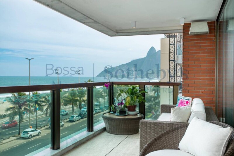 Apartment facing the sea in Ipanema, fully renovated. It features a spacious balcony and a living room with three areas, adorned with soft tones that enhance the brilliance of the sea entering through the large windows. The layout includes a breakfast room with access to the kitchen and three suites in the private area, with the master suite offering a spacious walk-in closet. The living room also includes two built-in cabinets for dishes and other utensils. Lastly, there is a service area with staff quarters.