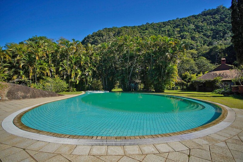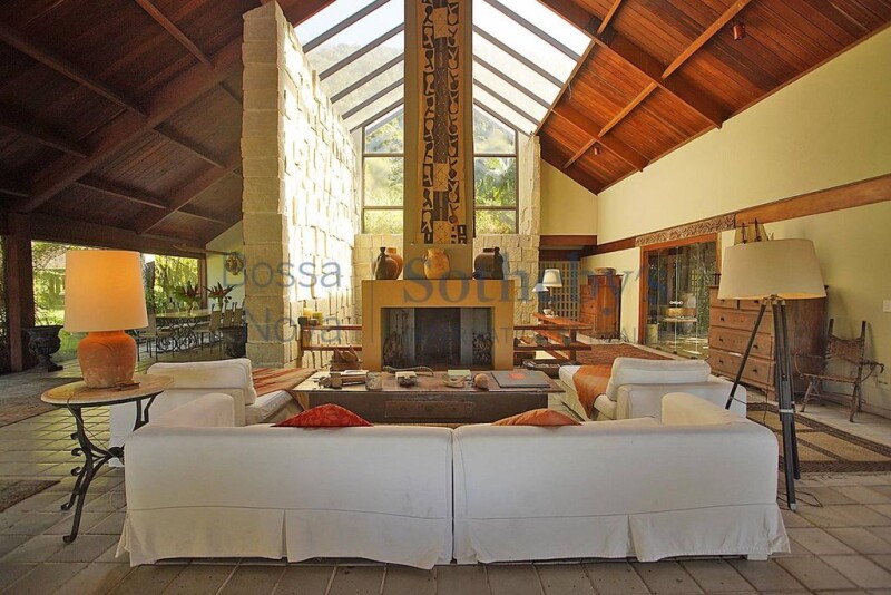 Located in Mangaratiba, on the Green Coast, 80 km from Rio de Janeiro. House designed by the renowned architecture firm Casé E Acioli and decorated by AMC Designers and has a catalogued antique shop. Portuguese craftsmen have carved spectacular woodwork, including cathedral ceilings, carved fireplaces, and a "bois de rose" kitchen. The outdoor area features a cinematic swimming pool with ocean views, pool table, bar, home-theater, dry and steam saunas, lighted tennis court, stone wine cellar, pizza oven, private gardens, vegetable garden, orchard, and a lake. The complex includes a main house with winter and summer living rooms, a master bedroom with two privative bathrooms, four bedrooms with privative bathrooms and fireplaces, and five guest rooms, two of which have privative bathrooms independent of the main house, and twelve more bathrooms, all decorated with fine finishes. Water comes from an exclusive permanent spring. The property also has a caretaker's house, and technical aspects include a private 75 KVA, 110/220 volt transformer throughout the property, 700 liter boiler, Lutron lighting and Philips Pronto remote control system for light, curtains, sound and home-theater, central and Split air-conditioning, Italian fittings, and a state-of-the-art security system. The property has its own private street and entrance from in Rio-Santos road, a large lawn that serves as a heliport, and the possibility of a private marina.