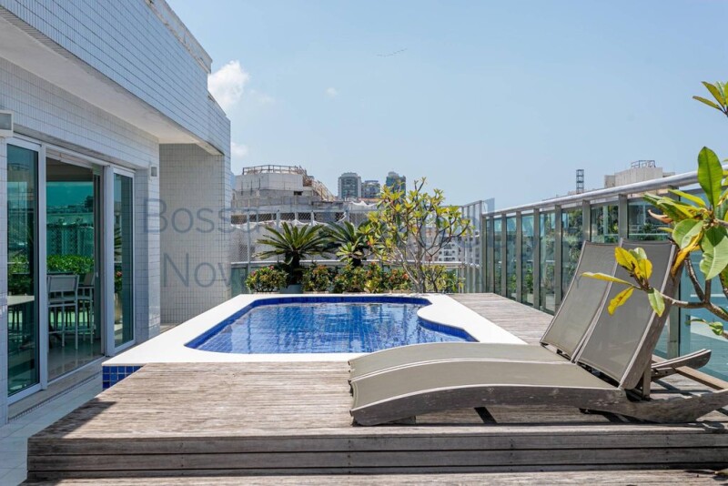 Duplex penthouse, in a sought-after condominium on the edge of Barra da Tijuca. Property planned with contemporary style. Spacious living room with several environments, lavatory, balcony with glass curtain and sea view. There are five suites, swimming pool, sauna, gourmet area with barbecue and wood oven. Condominium with 24-hour security and leisure area with all the infrastructure. Four parking spaces in the garage.