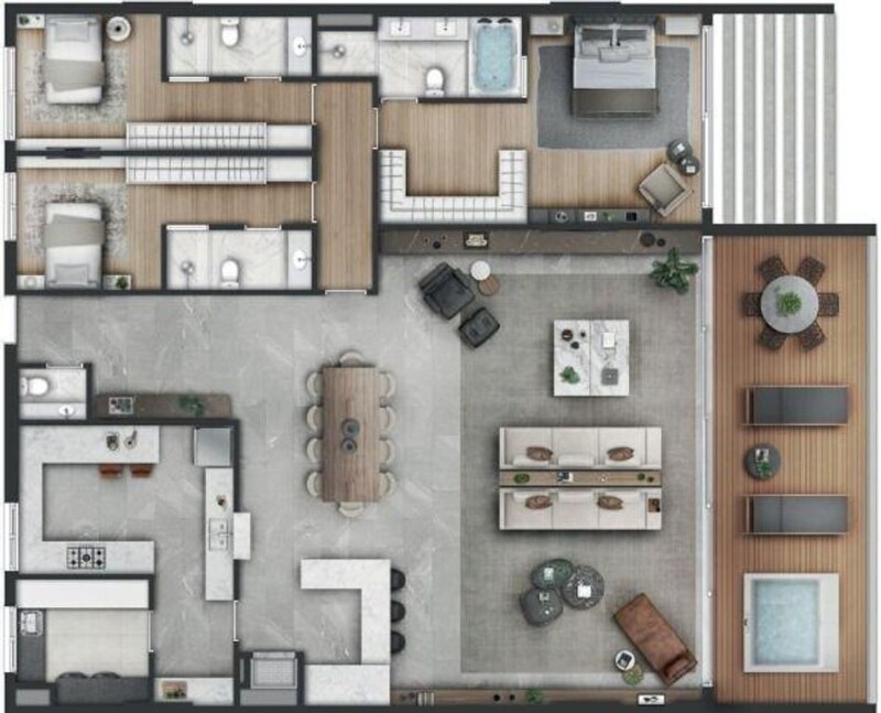 Porto 1820: Apartments measuring 220 to 445m in front of Guaíba with infrastructure inspired by high-end hotels, units with 3 suites and 3 parking spaces, next to the Iberê Camargo foundation. Condominium with indoor and outdoor pool, sauna, spa, massage room, fitness, party room and parking for visitors. Price and availability of the property subject to change without prior notice.