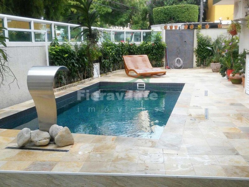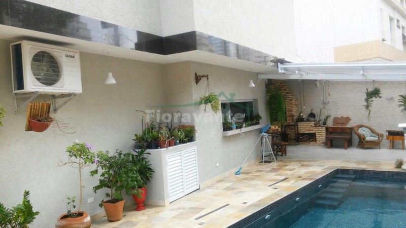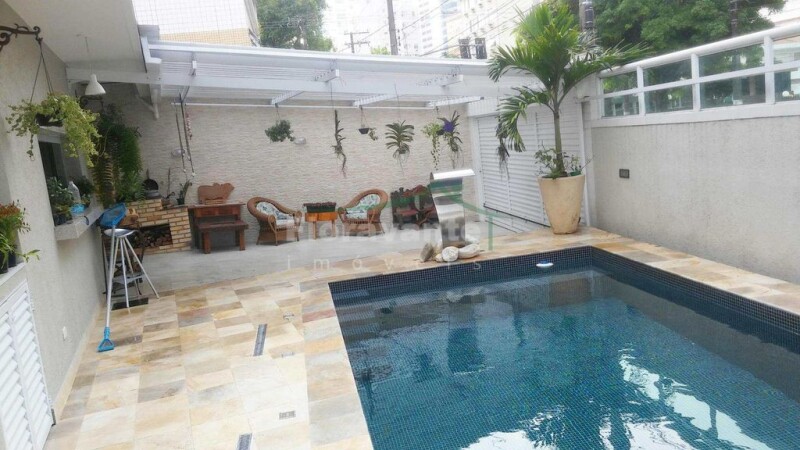 Village house one block from the beach and close to Shopping Praiamar- sobrado with swimming pool, barbecue, wood oven and kitchen support in the backyard, living room for 3 rooms in burnt cement, with air, toilet and kitchen in open concept on the ground floor and 4 suites on the 1st floor. Service with area, bathroom and maid's room - all rooms with split air - fully renovated and water heating by gas from the street - all suites with built-in closets.