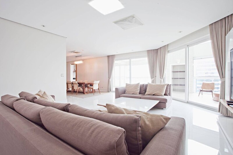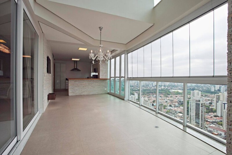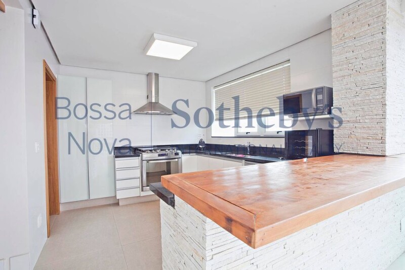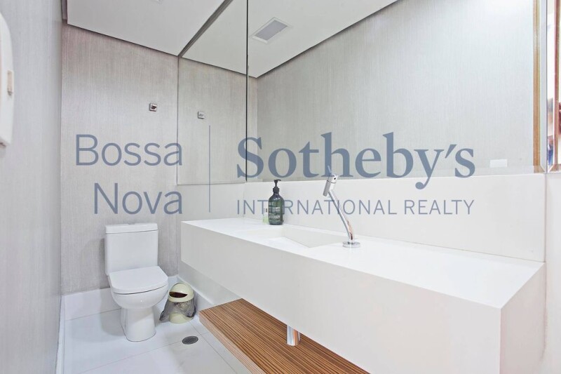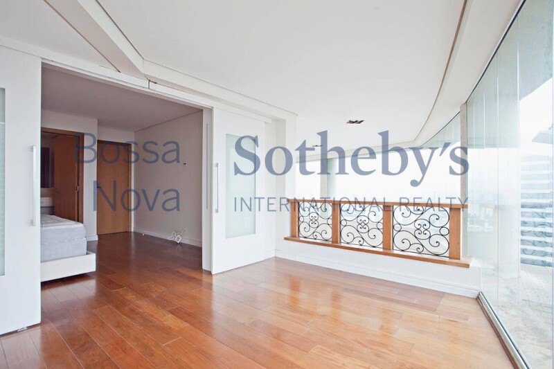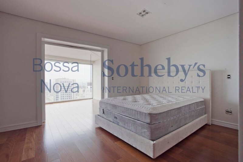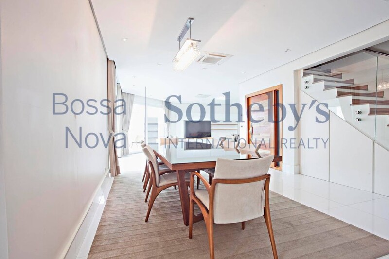 Apartment with a wide living area connected to the dining room, with a double height ceiling. There is a mezzanine area with an office and a lofty TV room, a professionally designed kitchen, a service area, staff quarters, a private social elevator per floor and an independent service entrance. The intimate area holds 3 suites and a bedroom, all offering air-conditioning.