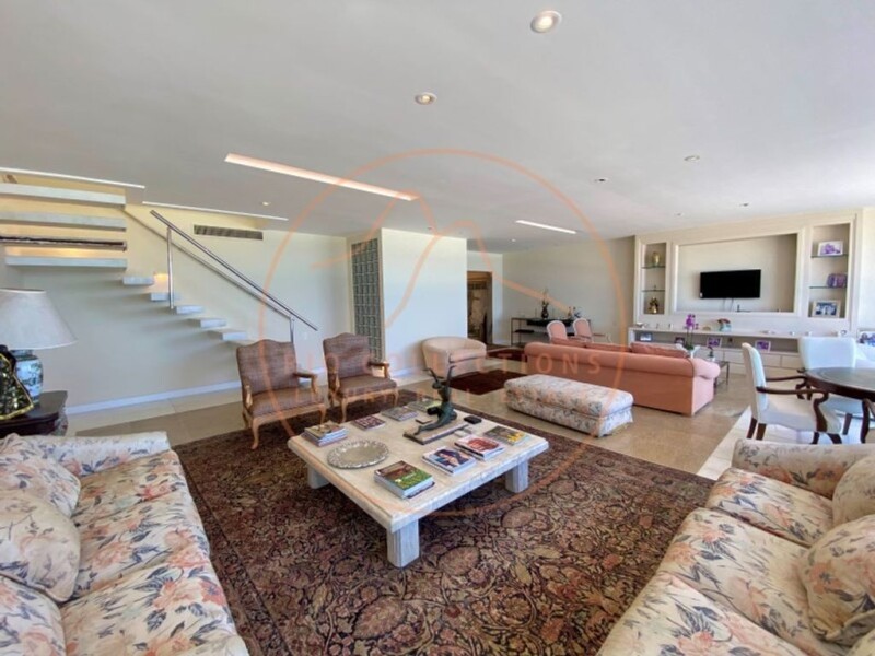 Duplex penthouse facing Ipanema beach with 416 m2. Panoramic view of the sea, mountains and beach. On the first floor we have 03 suites, living room, dining room, kitchen counter, kitchen, full service area, toilet, private hall. On the second floor we have 01 suite, 01 living room with kitchen, toilet and a spacious open balcony.