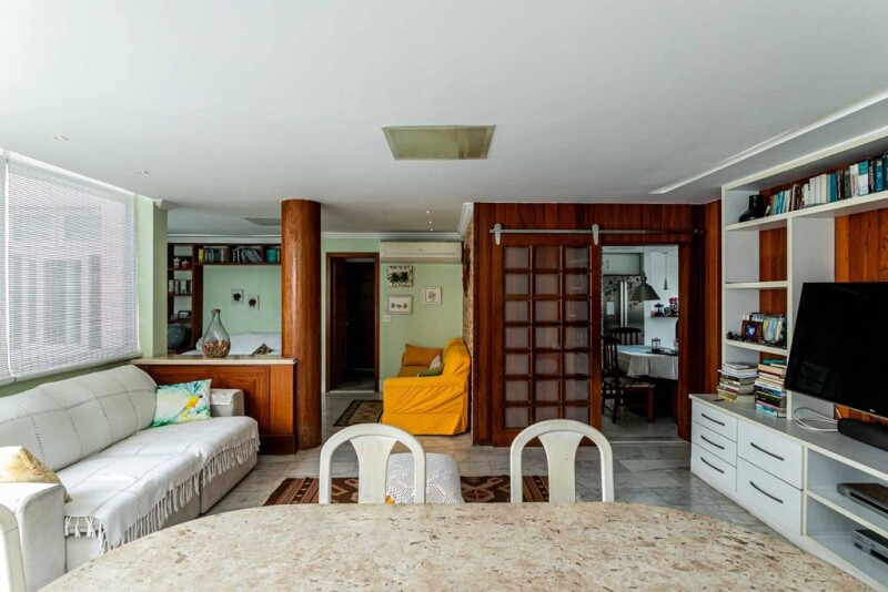 Discover the elegance and sophistication of this stunning 2,153 sq. ft. apartment, designed by a renowned architect and located on the iconic Avenida Atlântica in Copacabana. Featuring two integrated living rooms with three distinct marble-clad environments, the space is both elegant and welcoming, with abundant natural light and ventilation. A powder room adds extra comfort. The master suite is a haven of luxury, boasting two spacious bathrooms and a walk-in closet. Additionally, there is a second bedroom on the same floor with a view of the outdoor area, which includes a barbecue and outdoor shower, perfect for relaxation. The mezzanine, clad in hardwood, offers a cozy and sophisticated setting, ideal for an additional bedroom. The gourmet kitchen is spacious, featuring porcelain tile flooring, custom cabinetry, and a generous pantry. The service area is practical and functional.