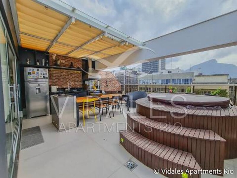 Luxury penthouse in an exclusive location, designed by an architect in a high-standard building with infrastructure and security, Garcia d Avila height, with beautiful views. First floor; entrance hall, two suites, master suite with balcony with side sea view, two closets. A reversible suite into a home-office room, gourmet kitchen integrated into the balcony. Second floor; suite with large closet, beautiful bathroom, TV room, gourmet area with barbecue and jacuzzi with views of Corcovado. Two vacancies in the deed.