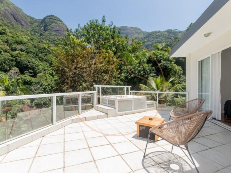 Renovated and well-maintained house, with 270 m2 of built area and 1,400 of land. View of Pedra da Gavea and the sea of Sao Conrado. The house has a living room, dining room, kitchen and balcony, all integrated into a large hall with high ceilings and open views. The intimate area is distributed in a suite and a bathroom on the lower floor, and three bedrooms, the master suite with a spacious bathroom with a glass-enclosed shower with a view, on the upper floor. The attached balcony is spacious and has a jacuzzi. House with abundant natural lighting and good ventilation. Safe and quiet street.