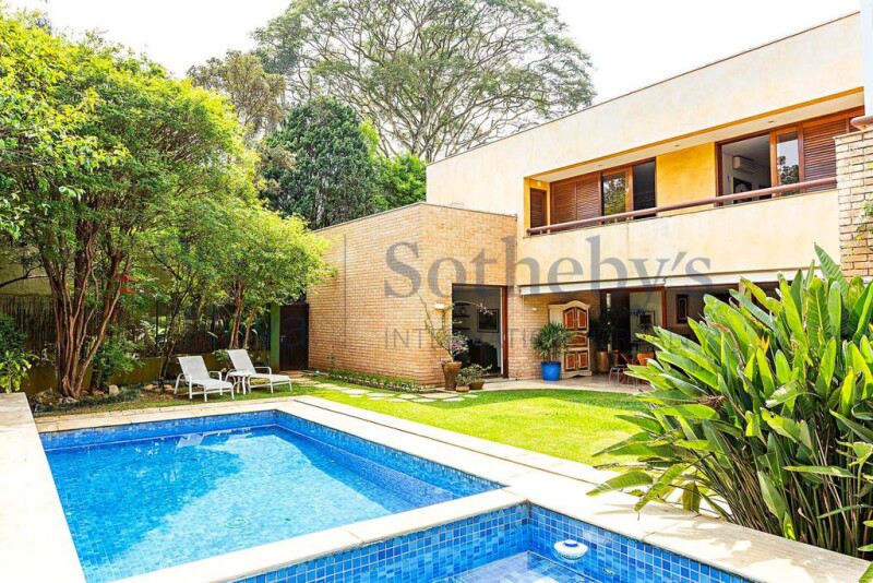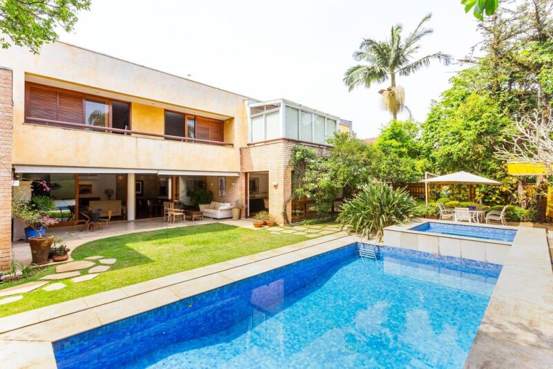 Spacious house in a gated community that has plenty of greenery and wooded areas, in a quiet location where it is always possible to hear the chirping of birds, but still inside the privileged urban area of São Paulo. With wide and cozy rooms, the house has a living area that can be divided into four separate environments, namely dining room, sitting room, games room and TV room, as well as two kitchens, one of which is destined for daily use and the other, more sophisticated, for special occasions. There also is a studio and a library. In the sleeping area there are four bedrooms, all with en-suite bathrooms; the master bedroom has a whirlpool bath in the bathroom, as well as a closet, an office space and a balcony. The outdoor area comprises a garden, a heated swimming pool, a hot tub and a gourmet space. There is solar and electric heating and a vegetable garden.