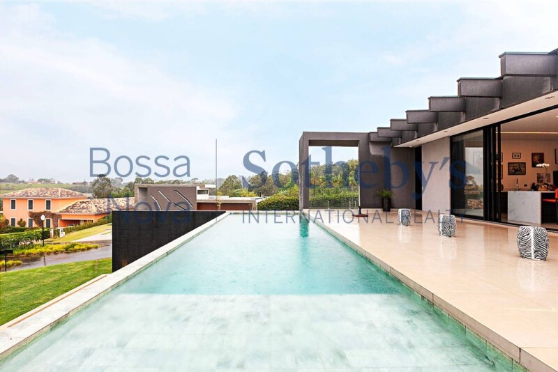 House designed by Alexandre Chaguri inside the highly sought-after gated community Terras de São José II, in Itu, São Paulo. It comprises a spacious living area, a home cinema, a gas fireplace, a wine room, a kitchen, a gourmet area, a heated swimming pool, a steam room, a half bath and a service area. In the sleeping area there are five bedrooms with en-suite bathrooms. Terras de São José II is a gated community that has 21 waters springs, over one million square meters of preserved wooded areas, and full leisure facilities, including an equestrian center, 20 tennis courts, two natural grass soccer fields, a helipad, a fitness center, a playground, a gourmet area and the Jack Nicklaus Academy of Golf.