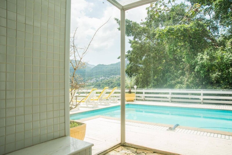 This house is in a condominium at Itanhangá neighborhood, a few minutes away from Barra da Tijuca. Surrounded by native flora, the land has an amazing view, fruit trees and a wide leisure area offering a pool, a wood burning stove, a barbecue pit, a glass covered steam room, a pizza oven, a pool table and a gym. The living area has a double height ceiling and big glass panels, bringing nature inside.