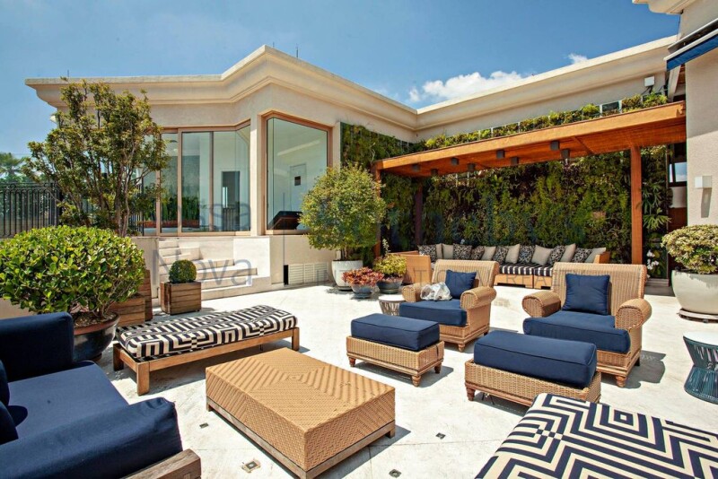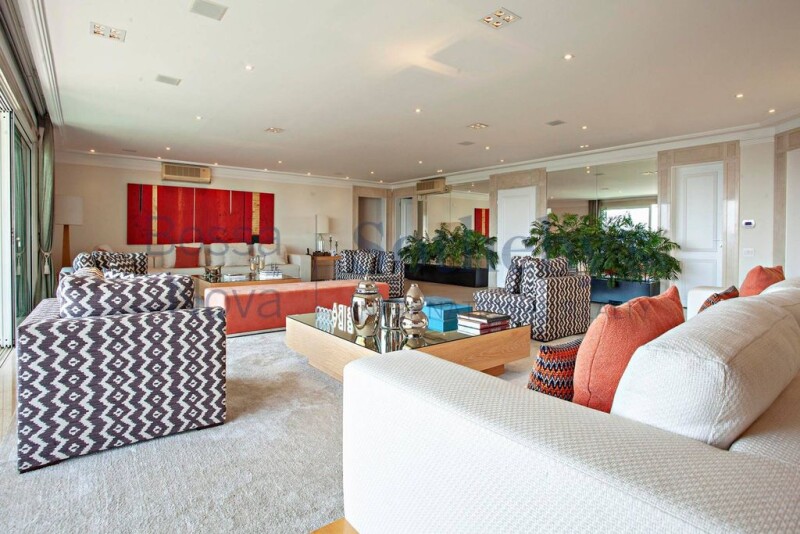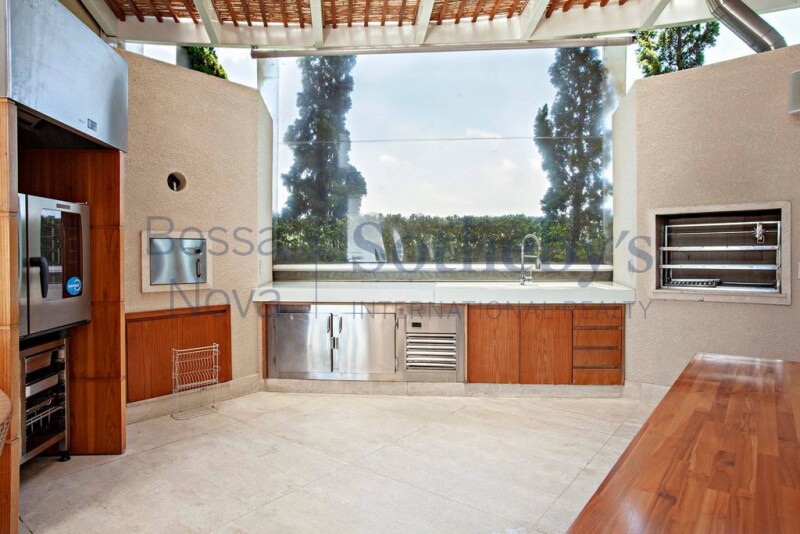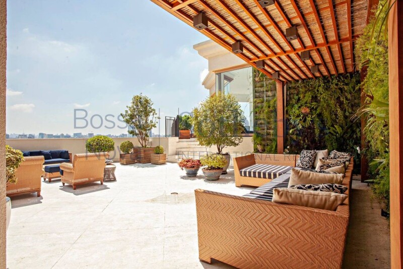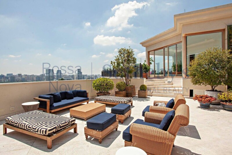 Fully furnished and decorated duplex penthouse on a prime location of São Paulo, overlooking a park. On the first floor there is a living area with marble flooring, great lighting and a sound system, as well as a family room, a media room, an office space, a dining room, a fully equipped kitchen and four bedrooms, all of which have private bathrooms, plenty of closet space and air conditioning. The master bedroom has a walk-in closet and a His and Hers bathroom. On the second floor there is another living area, as well as a gourmet space, a dining room and leisure facilities that include a steam room with two bathrooms, a whirlpool bath, a heated swimming pool, a barbecue grill, a pizza oven and a wine fridge. All rooms have air conditioning. The building offers 10 parking spaces in the garage and 24-hour security.