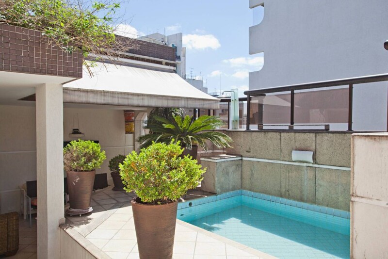This stunning penthouse resembles a house, having a pool, a pizza oven, a fireplace room, an office and a home theater room. The intimate area has 2 suites, with the master one offering a closet.