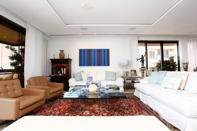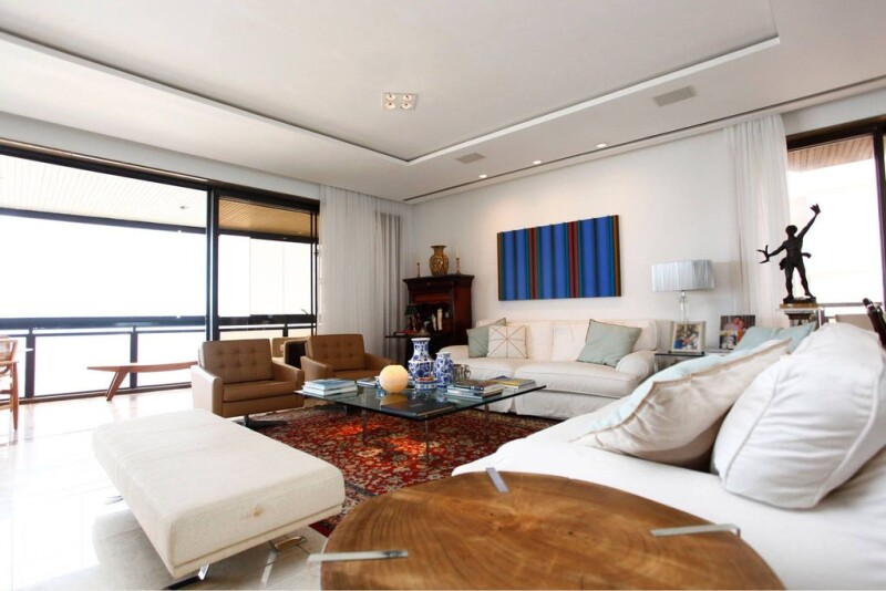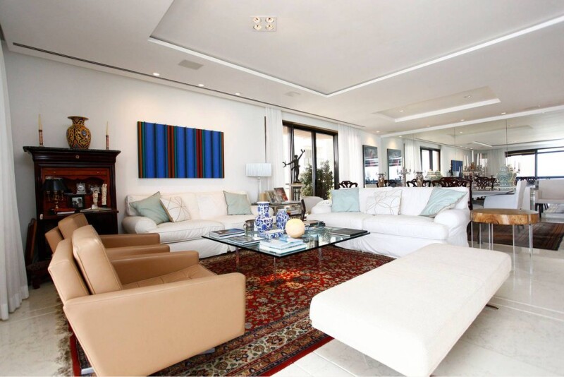 This exclusive condominium features only one unit per floor, offering a bright, airy, and quiet living environment. Renovated and decorated by renowned designer Solange Medina, the apartment boasts a balcony enclosed in glass, providing both comfort and modernity. The circular layout ensures seamless flow between spaces, including an entry hall, a living room with three distinct areas, and a powder room. The private area consists of four bedrooms, three of which are suites, including a master suite with a sauna and walk-in closet. An additional office and a shared bathroom complete the space. The kitchen, breakfast area, utility room, and laundry area are functional and well-planned, complemented by two staff quarters and a service bathroom. The apartment comes with four deeded parking spaces. The condominium provides 24-hour security and concierge services, ensuring exclusivity and peace of mind.