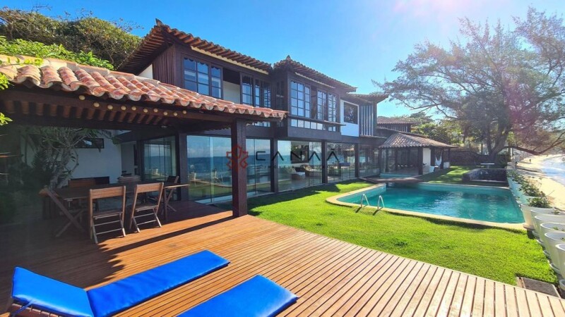 Traditional Búzios house, right on the sand, 1280m2 of land, 850m2 of built area, a few meters from Rua das Pedras, impeccable maintenance, very refined in the center of Búzios! DETAILS: - 2 floors; - 1,280 m² of land, 850 m² of built area; - 9 bedrooms (5 internal suites, 2 service bedrooms, guest/caretaker's house with 2 bedrooms); - Sauna; - Swimming pool; - Jacuzzi; - Games room; - Right on the sand; - Furnished; - Garage; and much more...