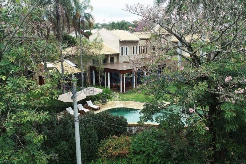 Spacious and modern house with a rustic touch, large windows overlooking the green in the cirty of Itu. It has different finishes in all internal and external environments. Surrounded by a garden with orchids. On the ground floor there is an inviting entrance hall with high ceilings that accompanies all areas of the social area. It has a large living room with fireplace followed by a covered balcony integrated to the garden's landscaping, a dining room for twelve seats, a lunch room incorporated into the gourmet balcony fully equipped with barbecue and pizza oven with porcelain floor that imitates stone for easy maintenance, a main kitchen used on a daily basis with a spacious pantry and a second support kitchen, fully equipped between the dining room and the gourmet balcony. It also has two home theaters, two suites with a closet, an gym and sauna, as well as a well-kept garden, with a heated pool, fruit trees and a nursery. It has an elevator and a marble staircase that access the three floors. Upstairs, there are four suites, all with Kitchens cabinets, air conditioning, blackout and automation of blinds. The master suite has an anteroom, walk-in closet and a spacious bathroom with a shower in the center, as well as two sinks. All environments have lighting and sound design, cellphone automation for lights and TV, artesian well, generator and energy stabilizer, camera system and motion sensor. Gated community with 20 tennis courts, equestrian with indoor track and 50 newly renovated bays, three soccer fields, sports court and society football, sand volleyball courts, jogging track, helipad, chapel and golf course, weekly organic fair, ambulatory with local ambulance, cafeterias and a modern restaurant that will open soon.