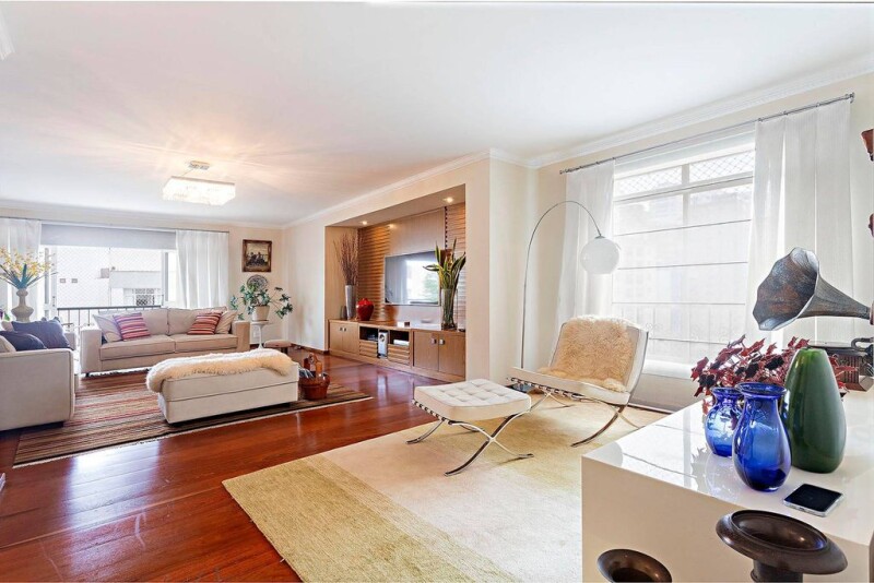 A classic apartment in a Lindenberg building with an excellent location, close to the Paulistano sports club and Santa Luzia emporium, surrounded by tree-lined streets. It has a generous floor plan with a living area for multiple environments and a terrace integrated into the living room. All rooms are full of windows that provide good lighting, ventilation and a pleasant view of the treetops. In the sleeping area there are three excellent bedrooms, all very spacious and comfortable, with private bathrooms. The apartment has two parking spaces in the garage. The building is very well-kept.