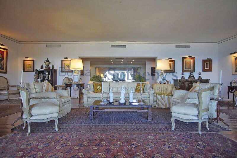 Apartment on a private street, with almost exclusive access to Arpoador Beach. The building has only one apartment per floor, of approximately 700 m², and has a social area composed of a hall with private elevator, entrance gallery and distribution to the rooms with marble floor, lounge with plank floor, dining room, library in jacaranda wood paneling and a spacious balcony, also in marble with bar in the background and full view of the beach and Arpoador rock to the Morro Dois Irmãos and Pedra da Gávea. The intimate area has five bedrooms, three of which are suites, and a TV room in the hallway. The service area has utility rooms, bathroom, kitchen, pantry, lunch room, and cupboards.