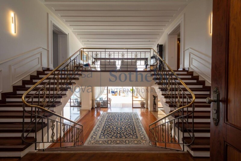 Located in the midst of exuberant nature and stunning views of the mountains, beach and sea of São Conrado. Totally modernized house with three floors in a gated community. The social area floor consists of a living room for three environments, a hall with linear and wide stairs, dining room, toilet, lunch room, kitchen with central island and cabinets, elevator, and access to the outdoor area with deck, gazebo, swimming pool, and gourmet area. The upper floor has an intimate living room, the master bedroom with walk in closet, bathroom with whirlpool, office, balcony with access to the deck, and three more bedrooms with privative bathroom. It has a game room, bar, gym with sea view, one bedroom with bathroom and privative access, four staff accomodation, laundry room, kennel, and two generators. The garage floor can accommodate up to 12 cars in a covered area.