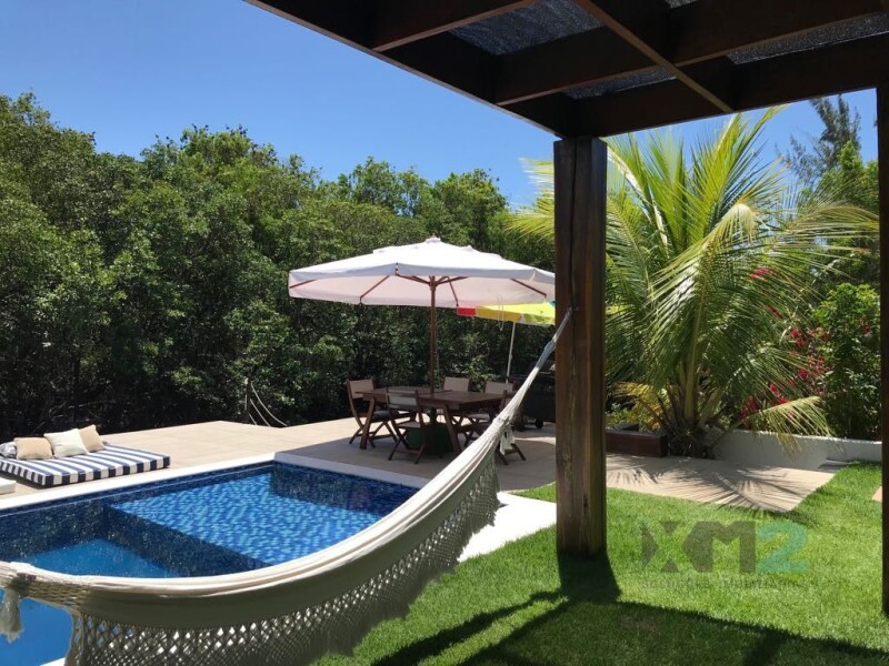 House in the beach of Toquinho. Toquinho Beach is 75km from Recife and is one of the most exclusive beaches in Pernambuco and practically private. To get to the beach is from Serrambi and it is necessary to go through the guardhouse of the Gated Condominium Marinas do Aquirá that is geographically a isthmus of sand strip and thus there are houses facing the sea and facing the river Serrambi. In this condominium 80% of luxury homes have boats and therefore many value the side of Rio because of the possibility of docking the boat on the private pier of each house. Almost in front of Toquinho Beach is Santo Aleixo Island, considered the most charming and beautiful sea and blue island of Pernambuco and became the darling of owners of boats that leave their houses to go walking and enjoy the waters until The island. This home faces the river and berths the speedboat and jetsky below the pier. There are 4 bedrooms and 2 suites, a super large living room, terrace, kitchen in a wonderful general environment.