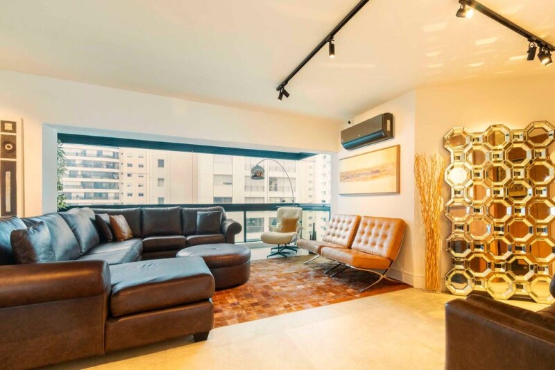 This cinematic duplex penthouse in Campo Belo has been completely renovated, featuring a heated pool, home cinema, fitness area, gourmet space with a barbecue, bar, climate-controlled wine cellar, and herb garden—all flooded with natural light and offering panoramic views! With 5,123 sq. ft. of living space, it includes five bedrooms (four en-suite), seven bathrooms, five designated parking spaces, and a private storage room in the garage. On the lower floor, the private area includes three en-suite bedrooms, with the master suite featuring a walk-in closet and his-and-hers bathrooms with heated towel rails. All bedrooms and bathrooms have heated floors. The fourth bedroom is used as an office. The expanded 968 sq. ft. living room includes a climate-controlled wine cellar for 200 bottles, a breakfast room, dining room, and TV room, offering nearly 360° views. This floor also includes a powder room, kitchen, pantry, service elevator, laundry room, and staff quarters. The upper floor boasts a private leisure area with a heated pool, gourmet space with a barbecue and bar, fitness area with equipment, an 8-seat home cinema, game room with billiards and card tables, and an outdoor living area with a herb garden, fireplace, and pet space. There is also a reversible suite and powder room on this level. Additional features include armored doors, biometric access in elevators, internal camera system, Wi-Fi routers, automated blinds, and air conditioning throughout.
