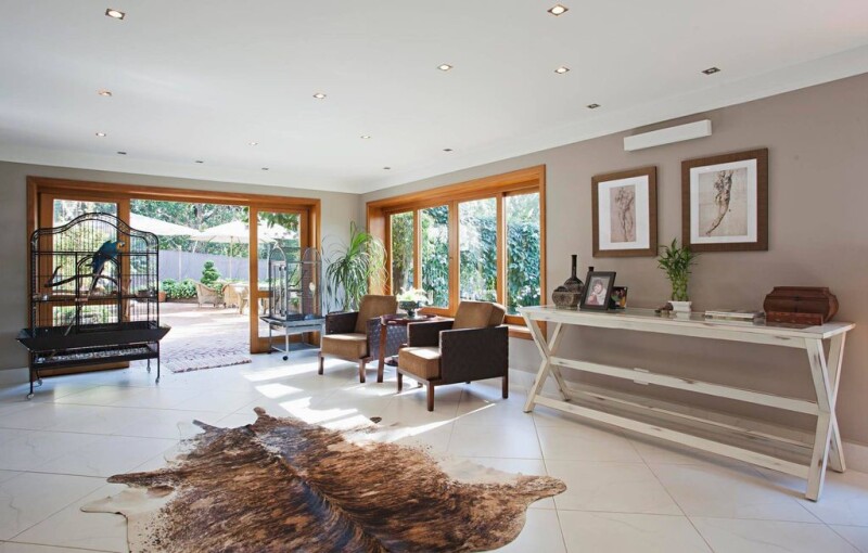 This house has rich details with gorgeous finishing, well-planned ambiances, a garden with a pool, a steam room, a toy library and space to entertain. There is a wide living area connected to a separate dining room, an office and four suites.