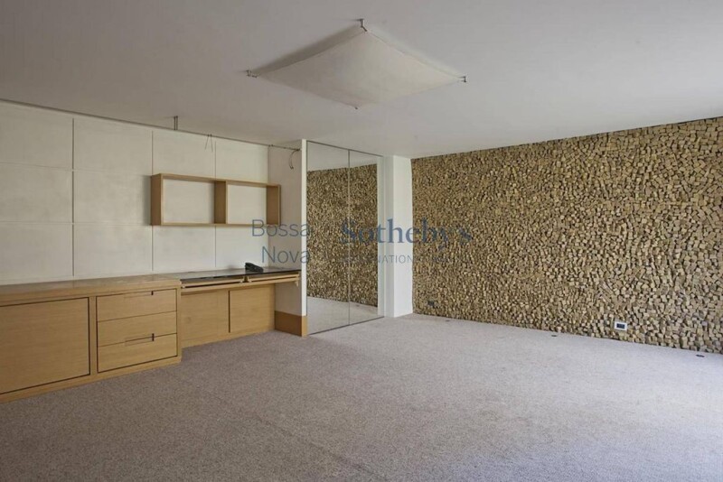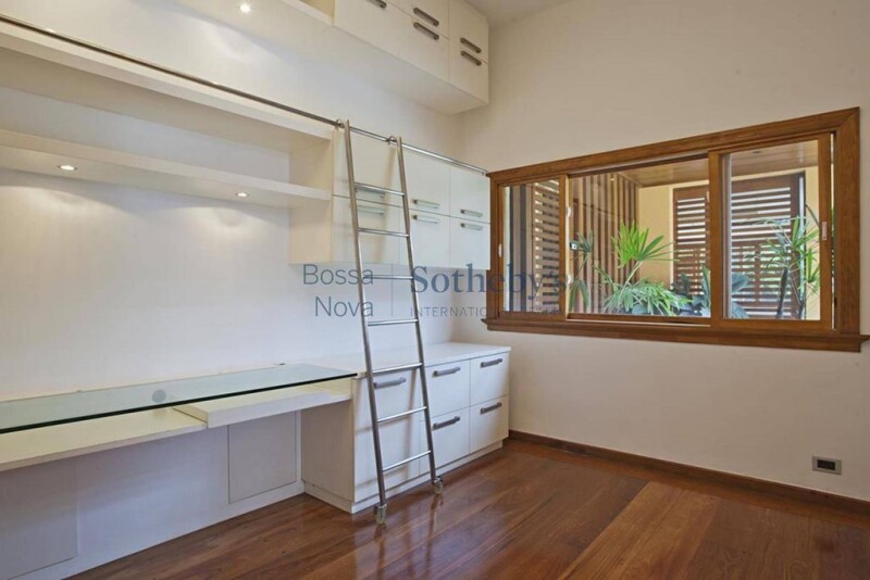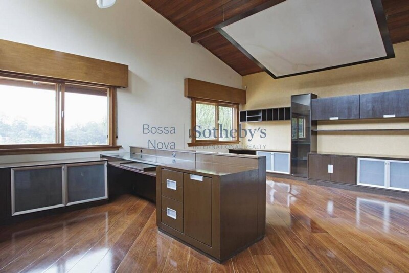 This complete and gracious house has a majestic garden with 800 m², full of palm trees, and large wood finishing use, contrasting with the greenery. It has a home theater space fully equipped, a library, a steam room, a warm pool, a living with a double height ceiling, fireplace, an orchard, a vegetable garden and a barbecue pit area.