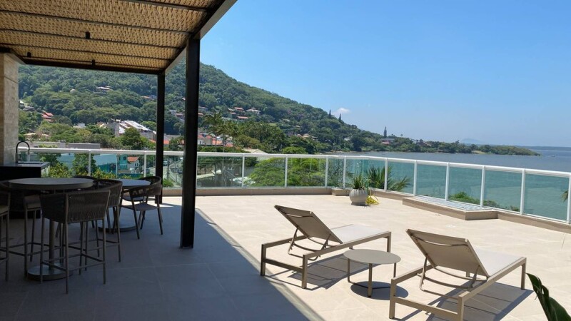High standard Duplex Penthouse with full view of the Lagoon Location Property located on a quiet and peaceful street in the center of Lagoa da Conceição with access to shops and restaurants on foot. To live in Lagoa is to enjoy the best of Florianópolis, the neighborhood is located in the geographic center of the island of Santa Catarina, between the neighborhoods of Rio Tavares, Itacorubi, Barra da Lagoa and Rio Vermelho, it is 14 km from the center of Florianópolis and 25 minutes from the airport. Near the neighborhood are some of the most beautiful beaches in the city, such as Praia Mole, Praia da Joaquina, Praia da Barra da Laagoa and Praia da Galheta. The property Apartment duplex penthouse ideal for people looking for a high standard property in the Lagoa da Conceição region. Recently refurbished by the French owner who worked in partnership with a Brazilian architect who lives in southern Spain, the property stands out for its refined taste, spacious, well-lit and functional spaces. On the first floor, the property has a kitchen integrated with the dining and living room, both opening onto a 100m2 furnished terrace with a Jacuzzi waiting area. The fourth suite was transformed into a television room and office, but with a movable wall, making it possible to transform it into a guest suite. Several closets were created to make the environment organized with built-in appliances, hobby box, pantry and laundry. On the second floor, the 2 suites were renovated, creating true five-star hotel rooms, with bathtub, double showers, closets and lighting project. Both suites give access to a 40m2 balcony created on the upper part of the pergola where the view of the Lagoon is evenmore impressive. The property has two garage spaces.