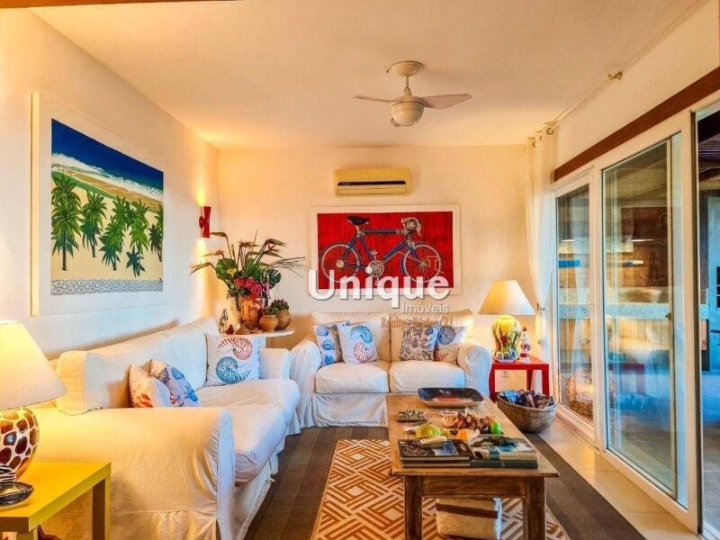 Looking for a property with direct access to the sea? You need to see this house! Property within an exclusive condominium with only 16 units. Comprising a large living room in 3 rooms, 4 suites, 2 on the lower floor and 2 on the upper floor, open-plan kitchen, guest bathroom, service area and complete quarters for employees. Outdoor area with a large balcony, garden, modern gourmet space, and a breathtaking view of Manguinhos beach. The property has solar heating and has 2 parking spaces. The condominium offers a leisure area with a swimming pool, barbecue and sauna. Schedule a visit now. Updated on 08/28/2024.